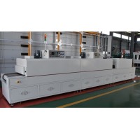 - 主固化段:核心工作区域,采用多温区独立控温设计(3-6 个温区),每个温区温度可精准调节(范围 80-150℃,控温精度 ±1℃),适配不同工艺需求(如模组结构胶固化需 120℃、防水胶固化需 100℃)。加热方式以热风循环为主,搭配远红外辅助加热,确保炉内温度均匀性≤±2℃,避免局部固化不完全或过度老化。