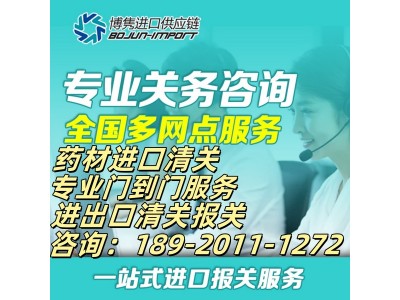 公司10余年进口申报经验,充分利用口岸特性和货物特点优化进口方案。天津清关公司查验团队,协助商检海关查验,及时处理问题提供各类进口资质和抬头,合理运用政策法规,主动根据客户情况和货物特点优化进行方案,覆盖全国主要关区和口岸,一站式服务。我们也会提供国际贸易协助,供应链金融服务,进口门对门特种运输。中药材类进口就选择我们,本司对中药材类进口经验丰富,进口中药材类所需的单证和资质,我们公司都是可以专业代办的,我司凭借进口服务和行业经验,为每一位客户提供量身定制的进口清关解决方案。