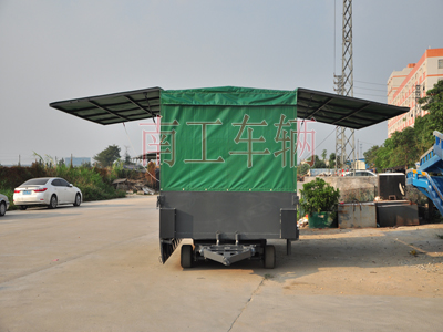 雨篷型平板拖车主要针对户外作业而制,保护货物防水、防尘、防晒,尤其适用于对包装外部要求严格的产品运输。整体雨篷框架可拆卸,满足不同运货需要。