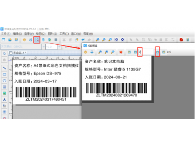 6. 制作完成之后,点击软件顶部的“打印预览”按钮,翻页查看批量生成的固定资产标签,预览无误就可以直接连接打印机打印出来了。